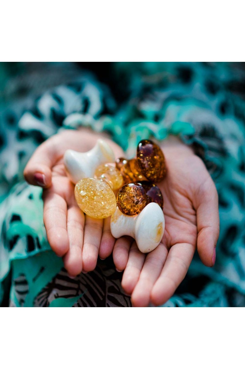 Wykonany z naturalnego bursztynu mlecznego, zaprojektowany z myślą o pielęgnacji delikatnej skóry wokół oczu oraz twarzy. Masaż grzybkiem niesie za sobą wiele korzyści: zmniejsza się opuchlizna i cienie pod oczami, zwiększa się cyrkulacja krwi. Dodatkowo masaż rozluźnia spięte mięśnie twarzy, pobudza i odmładza, zmniejszając widoczność drobnych zmarszczek. Pomocny podczas rozprowadzania kremu. Idealny dla każdego typu cery.