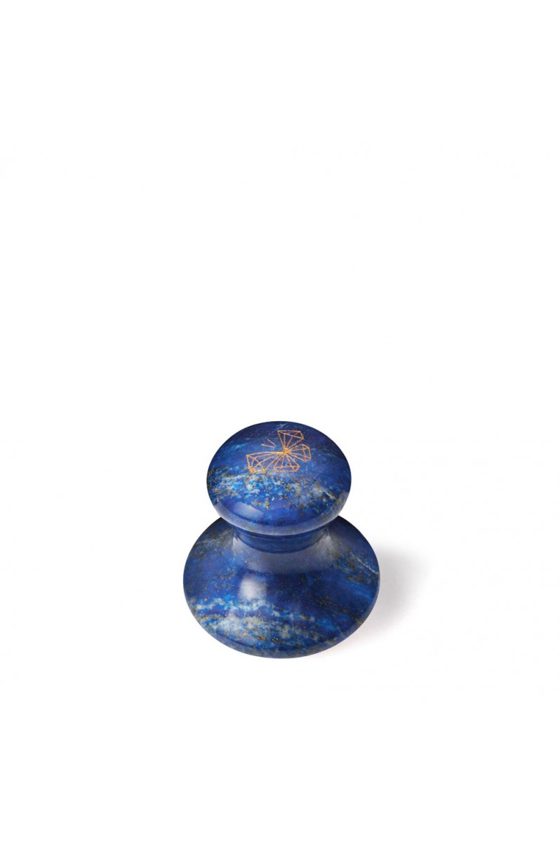 Wykonany z naturalnego lapis lazuli, zaprojektowany z myślą o pielęgnacji delikatnej skóry wokół oczu oraz twarzy. Masaż grzybkiem niesie za sobą wiele korzyści: zmniejsza się opuchlizna i cienie pod oczami, zwiększa się cyrkulacja krwi. Dodatkowo masaż rozluźnia spięte mięśnie twarzy, pobudza i odmładza, zmniejszając widoczność drobnych zmarszczek. Pomocny podczas rozprowadzania kremu. Idealny dla każdego typu cery.