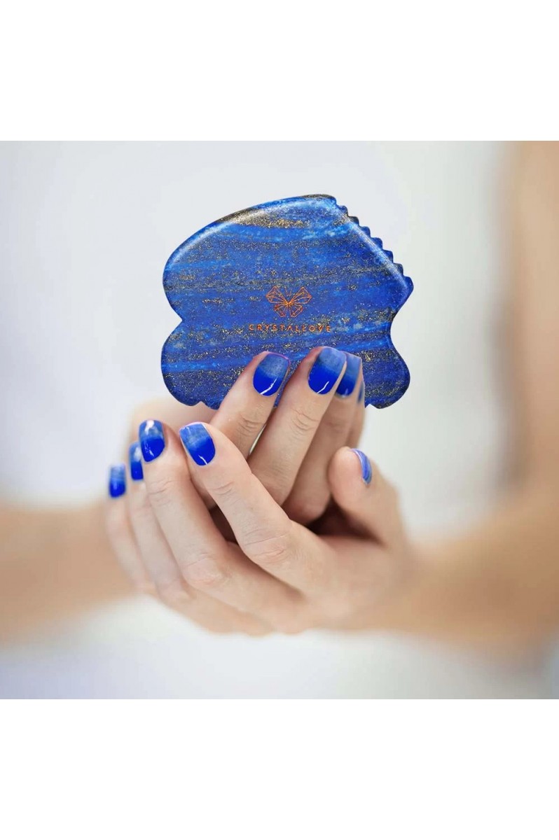 .Oryginalna płytka do masażu gua sha stworzona i zaprojektowana przez CRYSTALLOVE. Posiada 5 specjalnie wyprofilowanych krawędzi, które pozwolą Tobie na uzyskanie wspaniałych efektów masażu. Stworzona z myślą o miłośnikach domowej pielęgnacji, którzy pragną w profesjonalny sposób podejść do zabiegów gua sha. Płytka może być także z powodzeniem stosowana w gabinetach masażu i SPA. Wykonana z lapisu lazuli polerowanego obustronnie na wysoki połysk. Przeznaczona zarówno do masażu twarzy jak i ciała. Idealna dla każdego typu cery.