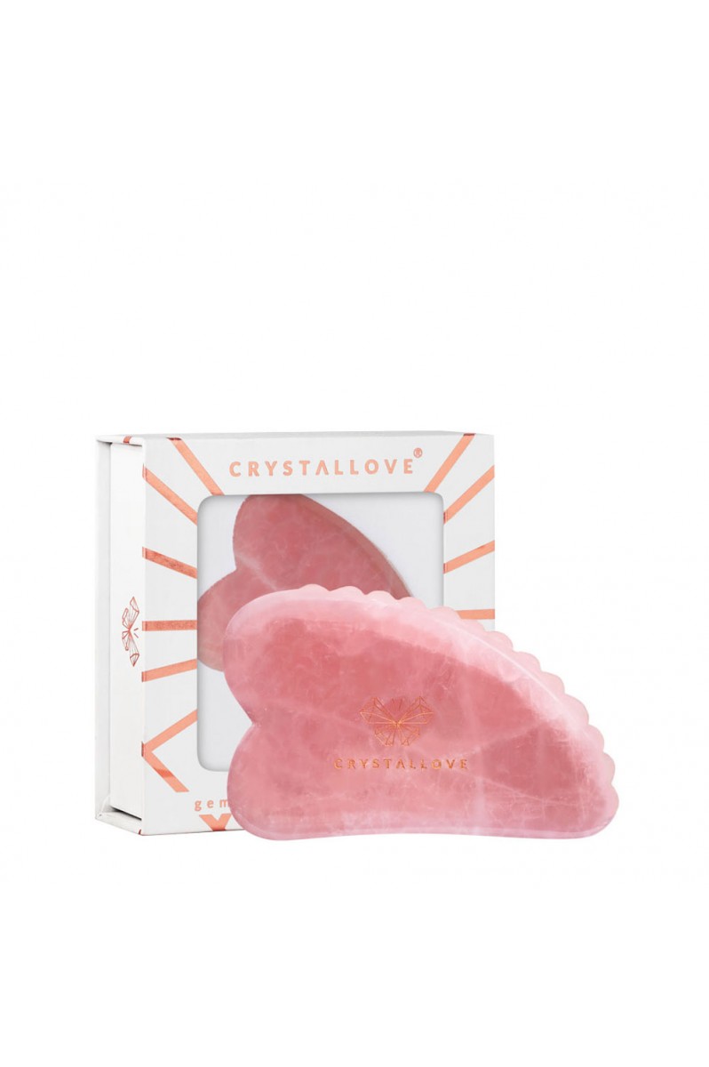Stwórz swój własny rytuał pielęgnacyjny za pomocą luksusowej płytki do masażu twarzy gua sha z różowego kwarcu.