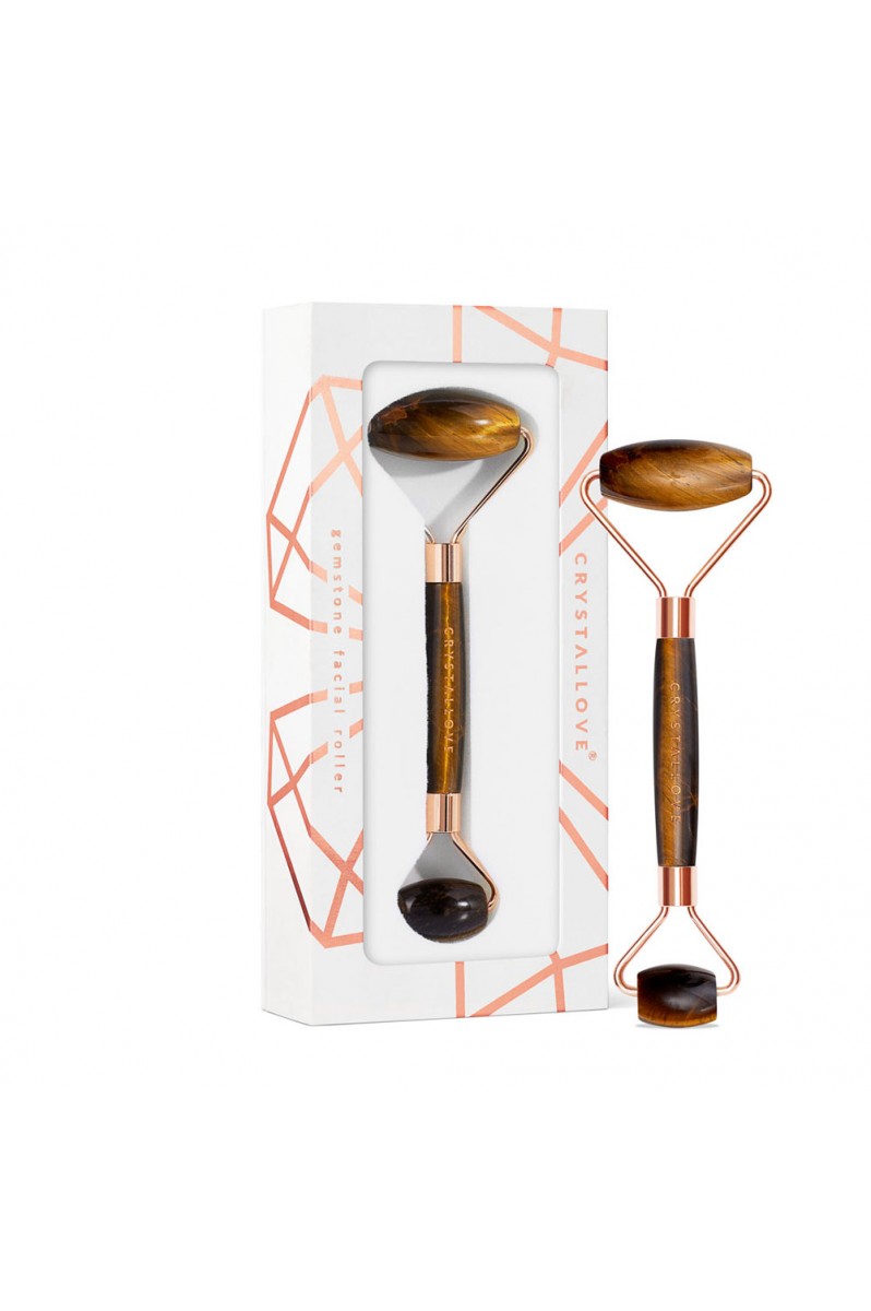 Stwórz swój własny rytuał pielęgnacyjny za pomocą luksusowego rollera do masażu twarzy z naturalnego kamienia tygrysie oko.