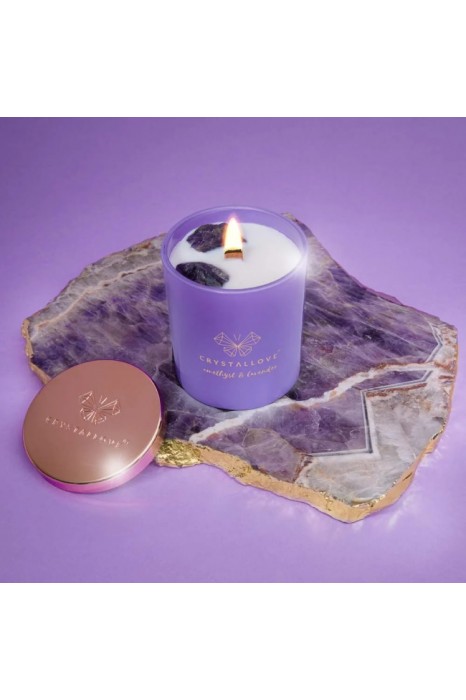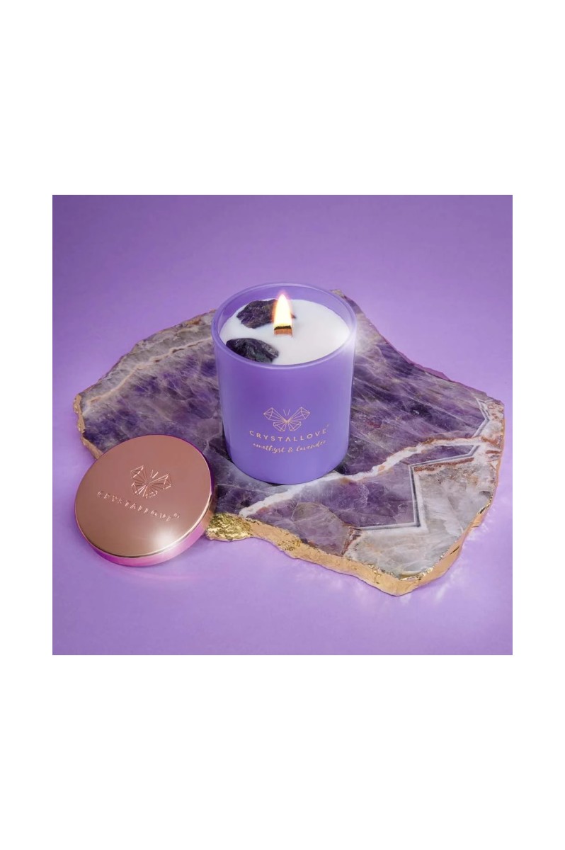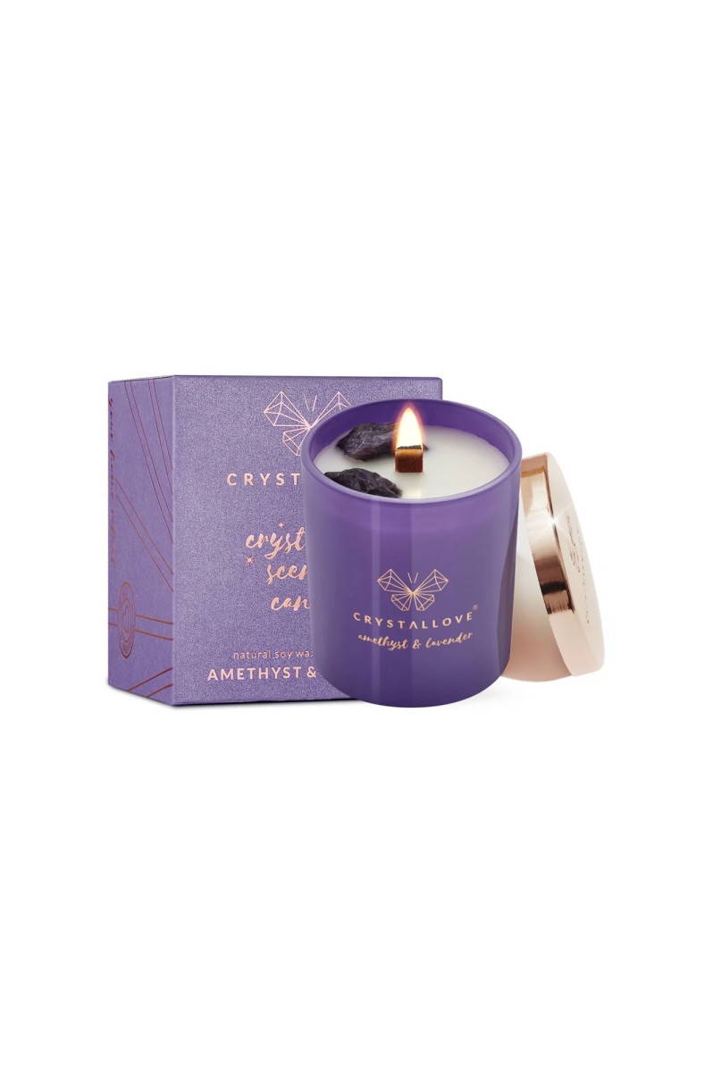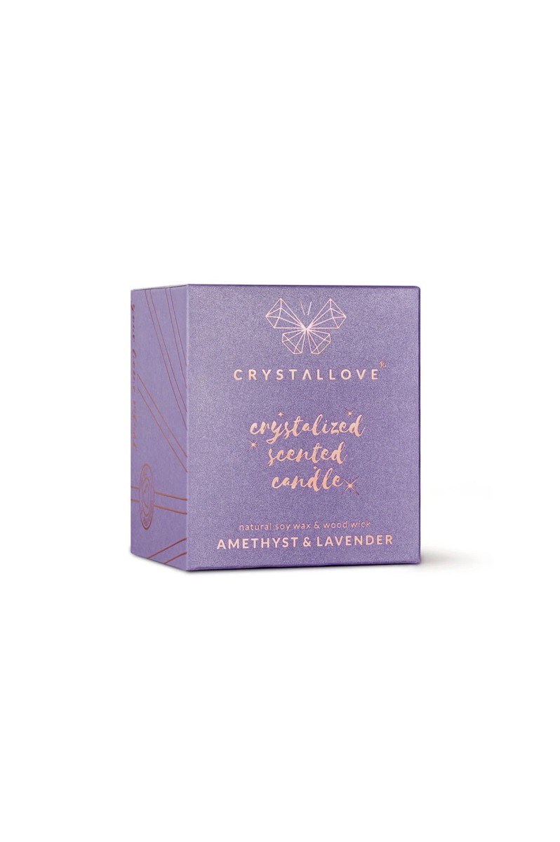 Stwórz wyjątkową atmosferę w domowym zaciszu dzięki zapachowej świecy sojowej CRYSTALLOVE AMETHYST SOY CANDLE & LAVENDER nasyconej energią czarnego obsydianu, uważanego za kamień wielkiej mocy. Świeca pełna aromatów wypełni przestrzeń Twojego domu relaksującym zapachem lawendy, czarnej porzeczki oraz piżma. Wykonana w całości z naturalnego i biodegradowalnego wosku sojowego, przyjaznego dla środowiska. Świeca posiada drewniany knot, który pali się wyjątkowym i pełnym uroku płomieniem. Luksusowa pokrywka w kolorze różowego złota uchroni wosk przed zanieczyszczeniami z zewnątrz. Szklany słoiczek ozdobiony jest logo marki. Każda świeca marki CRYSTALLOVE powstaje z najwyższej jakości naturalnego wosku sojowego. Każdą bryłkę ametystu dodajemy do świecy ręcznie. Świece pakujemy w przepiękne pudełka, które stały się już wizytówką marki CRYSTALLOVE. Sprawdzą się doskonale jako prezent.