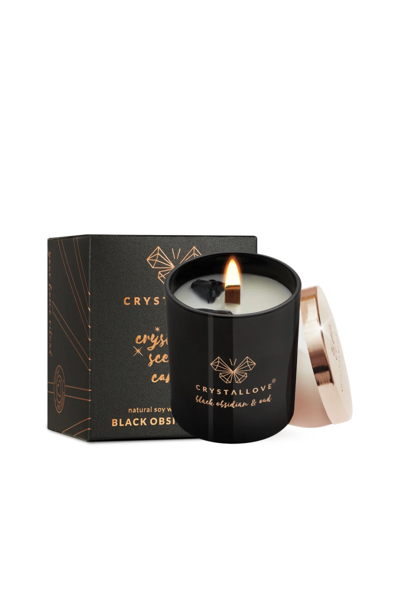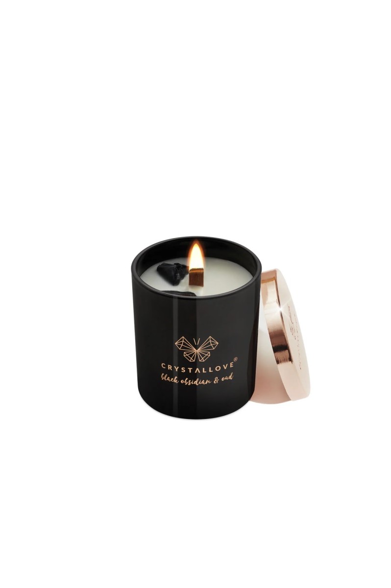 Stwórz wyjątkową atmosferę w domowym zaciszu dzięki zapachowej świecy sojowej CRYSTALLOVE BLACK OBSIDIAN SOY CANDLE & OUDH nasyconej energią czarnego obsydianu, uważanego za kamień wielkiej mocy. Świeca pełna aromatów wypełni przestrzeń Twojego domu orientalnym zapachem żywicy drzewnej oud, cedru oraz drzewa sandałowego. Wykonana w całości z naturalnego i biodegradowalnego wosku sojowego, przyjaznego dla środowiska. Świeca posiada drewniany knot, który pali się wyjątkowym i pełnym uroku płomieniem. Luksusowa pokrywka w kolorze różowego złota uchroni wosk przed zanieczyszczeniami z zewnątrz. Szklany słoiczek ozdobiony jest logo marki. Każda świeca marki CRYSTALLOVE powstaje z najwyższej jakości naturalnego wosku sojowego. Każdą bryłkę czarnego obsydianu dodajemy do świecy ręcznie. Świece pakujemy w przepiękne pudełka, które stały się już wizytówką marki CRYSTALLOVE. Sprawdzą się doskonale jako prezent.