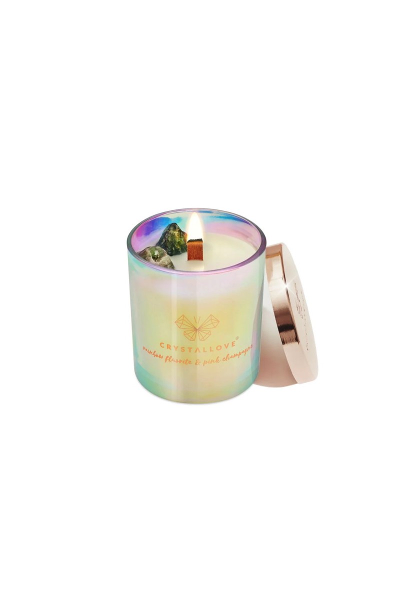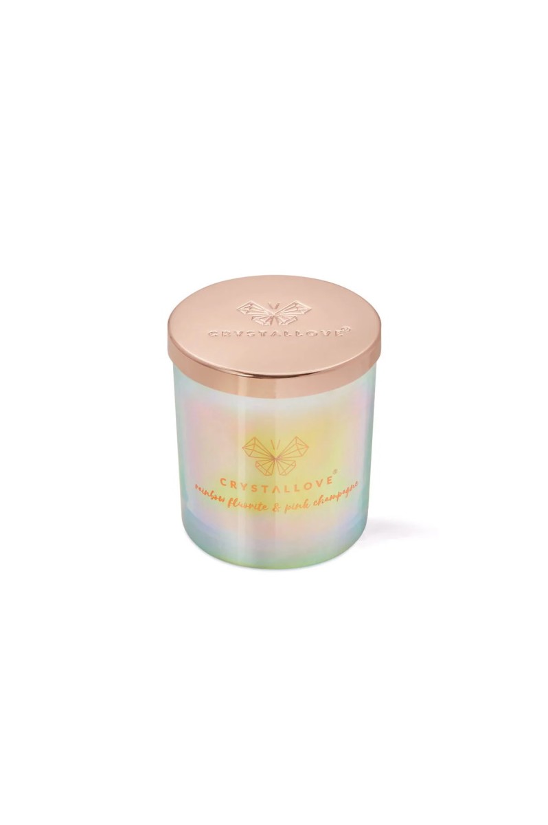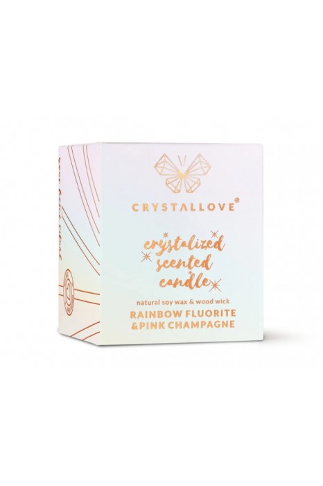 Stwórz wyjątkową atmosferę w domowym zaciszu dzięki zapachowej świecy sojowej CRYSTALLOVE RAINBOW FLUORITE SOY CANDLE & PINK CHAMPAGNE nasyconej energią fluorytu tęczowego, uważanego za kamień oczyszczający aurę. Świeca pełna aromatów wypełni przestrzeń Twojego domu świeżym i zmysłowym zapachem pomarańczy, wina, malin oraz róż. Wykonana w całości z naturalnego i biodegradowalnego wosku sojowego, przyjaznego dla środowiska. Świeca posiada drewniany knot, który pali się wyjątkowym i pełnym uroku płomieniem. Luksusowa pokrywka w kolorze różowego złota uchroni wosk przed zanieczyszczeniami z zewnątrz. Szklany słoiczek z efektem hologramu ozdobiony jest logo marki. Każda świeca marki CRYSTALLOVE powstaje z najwyższej jakości naturalnego wosku sojowego. Każdą bryłkę fluorytu tęczowego dodajemy do świecy ręcznie. Świece pakujemy w przepiękne pudełka, które stały się już wizytówką marki CRYSTALLOVE. Sprawdzą się doskonale jako prezent.