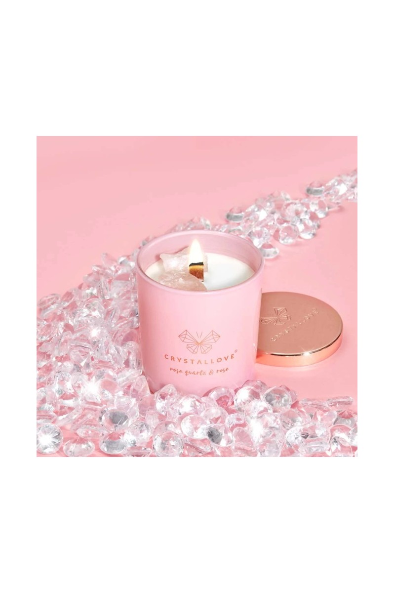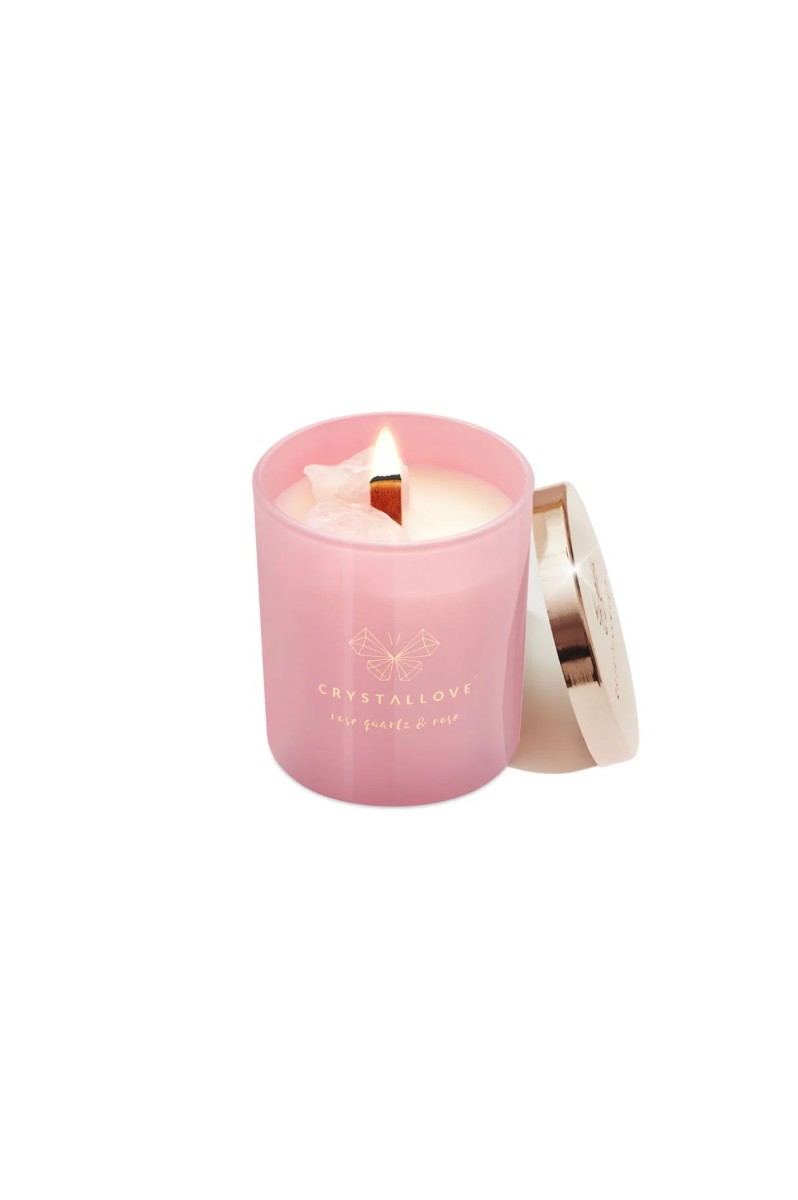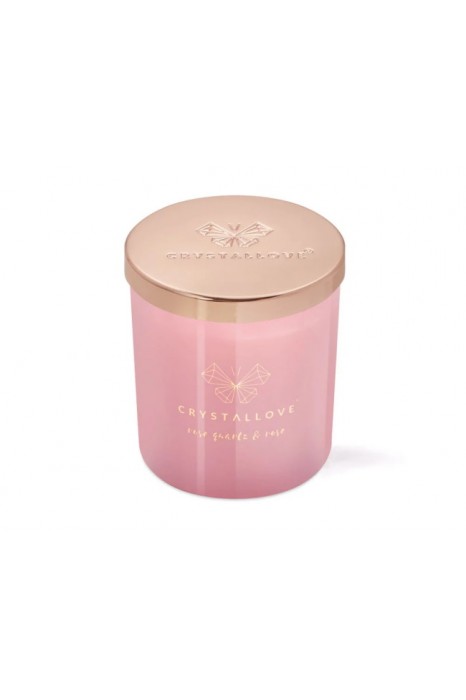 Stwórz wyjątkową atmosferę w domowym zaciszu dzięki zapachowej świecy sojowej CRYSTALLOVE ROSE QUARTZ SOY CANDLE & ROSE nasyconej energią kwarcu różowego, uważanego za najważniejszy kamień miłości. Świeca pełna aromatów wypełni przestrzeń Twojego domu świeżym zapachem róży z nutą geranium, śliwki oraz piwonii. Wykonana w całości z naturalnego i biodegradowalnego wosku sojowego, przyjaznego dla środowiska. Świeca posiada drewniany knot, który pali się wyjątkowym i pełnym uroku płomieniem. Luksusowa pokrywka w kolorze różowego złota uchroni wosk przed zanieczyszczeniami z zewnątrz. Szklany słoiczek ozdobiony jest logo marki. Każda świeca marki CRYSTALLOVE powstaje z najwyższej jakości naturalnego wosku sojowego. Każdą bryłkę kwarcu różowego dodajemy do świecy ręcznie. Nasze świece pakujemy w przepiękne pudełka, które stały się już wizytówką marki CRYSTALLOVE. Sprawdzą się doskonale jako prezent..
