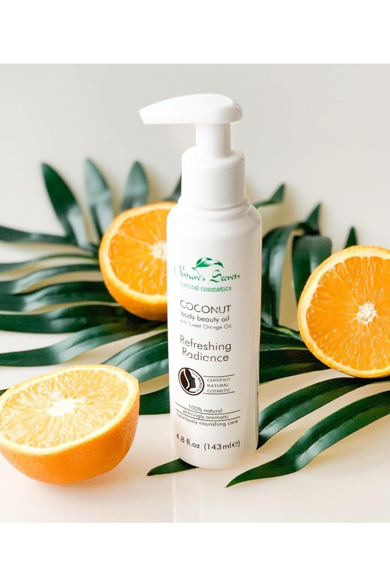 W 100% naturalny olejek do ciała odświeża i koi zmysły. Bogata w przeciwutleniacze mieszanka silnie odżywczego organicznego oleju kokosowego z pierwszego tłoczenia, olejku goździkowego, aromatycznego oleju z kory cynamonu cynamonowego, oleju słonecznikowego, oleju sojowego, oleju ze słodkich migdałów, oliwy z oliwek i oleju z nasion jojoby pozostawia skórę promienną, miękką i pachnącą.